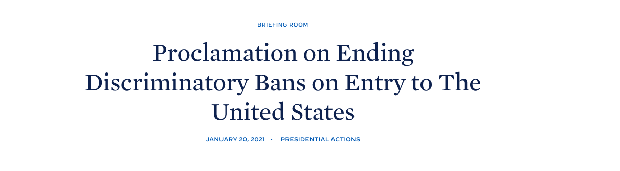 NCUSLR Welcomes President Biden's Decision To End the Discriminatory Travel Ban.